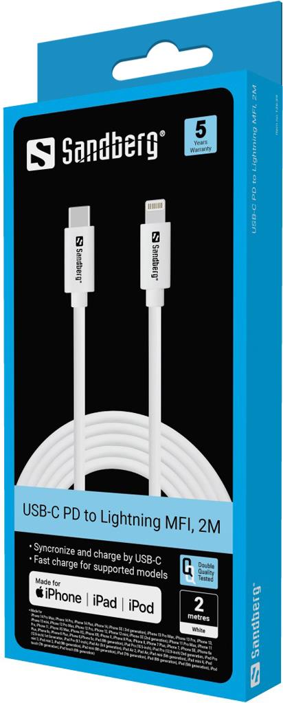 Sandberg - Lightning-Kabel - Lightning männlich zu 24 pin USB-C männlich - 2,0m - weiß - unterstützt Stromversorgung (136-59)