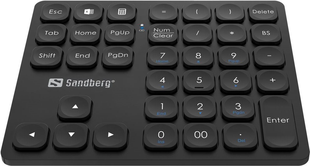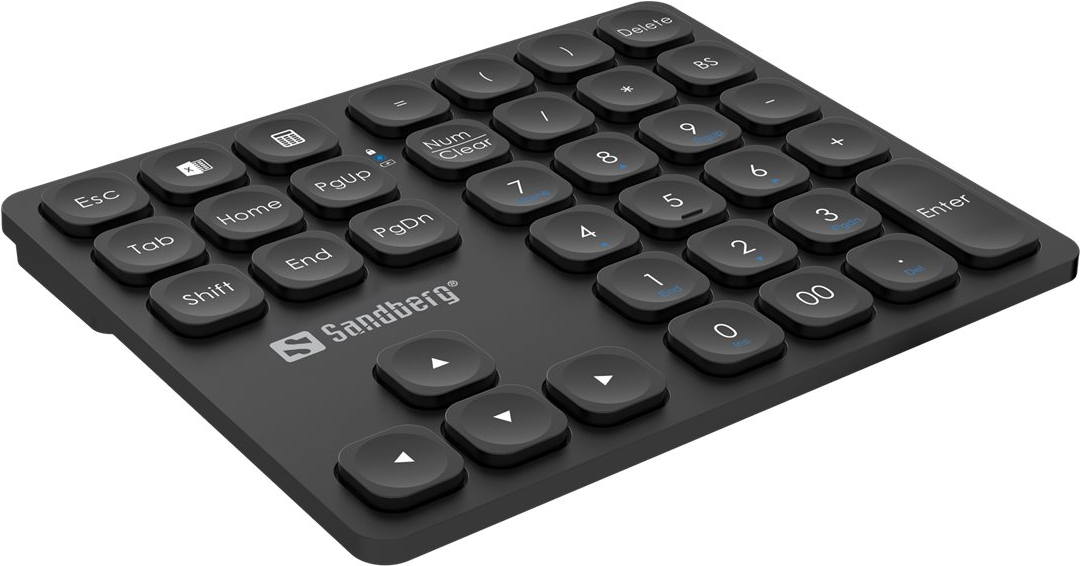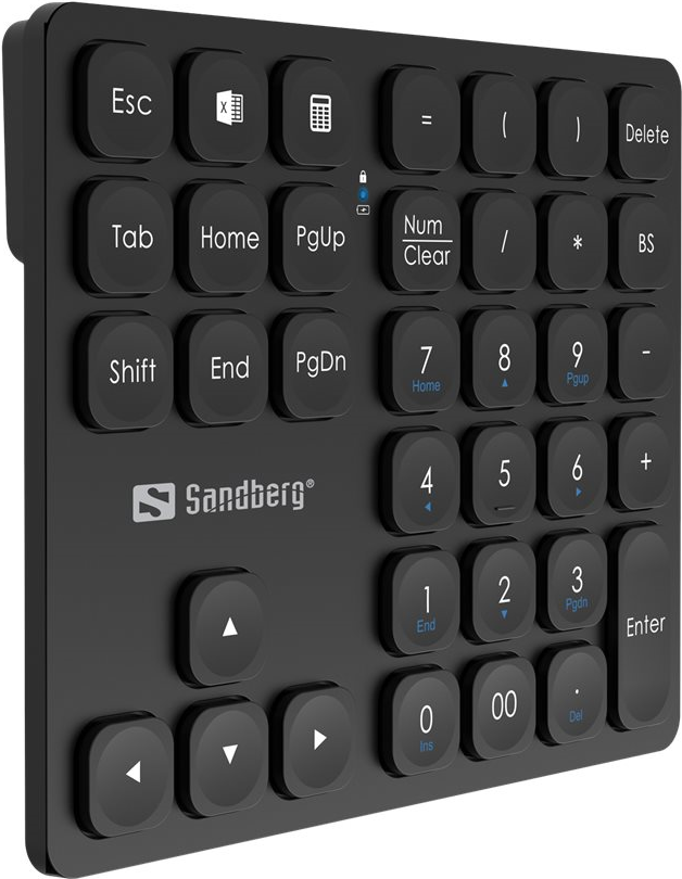 Die numerische Sandberg Bluetooth Tastatur ist eine intelligente Ergänzung Ihrer Laptop-Tastatur. Dank der 36 Tasten erhalten Sie ein vollständiges Ziffernfeld mit der Umschaltmöglichkeit für die "Pos1"-, "Ende"- und weitere Zugriffstasten, für die Pfeiltasten und mehr.