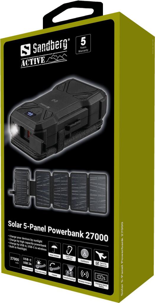 | Produktbeschreibung | Sandberg Solar PowerBank kabelloses Ladepad / Solar-Powerbank - 5-Panel - USB, 24 pin USB-C - 22.5 Watt |
