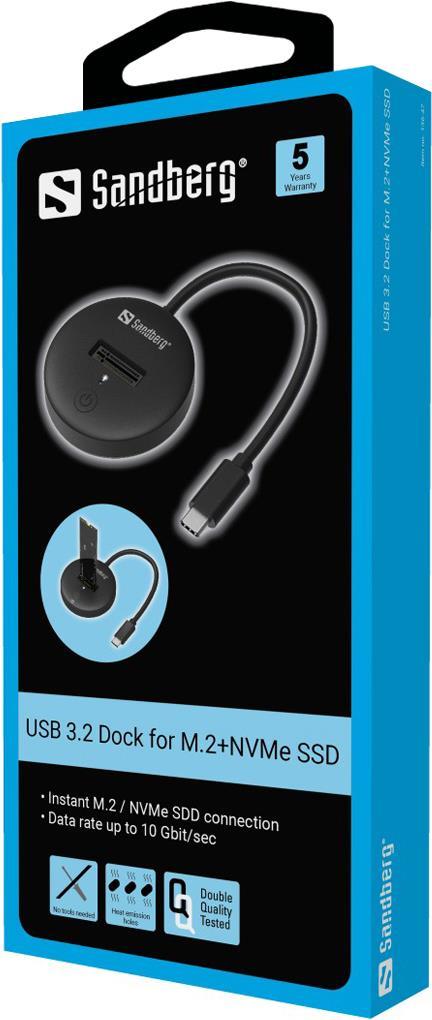 Sandberg USB 3.2 Dock for M.2+NVMe SSD - SSD - M.2 - 4 TB - USB Typ-C - 10 Gbit/s - Schwarz (136-47)