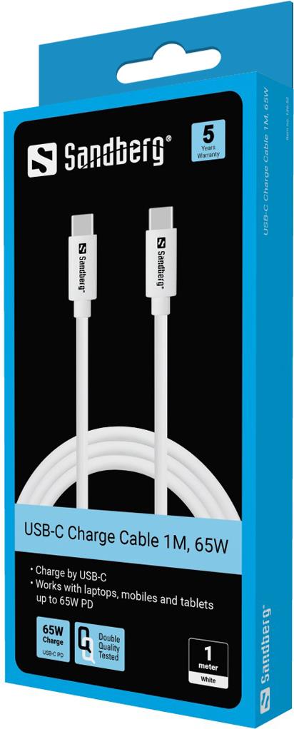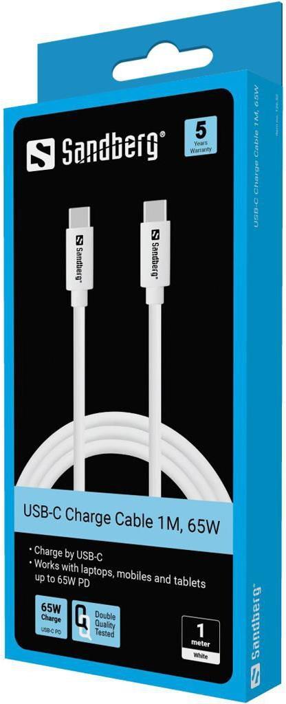 Sandberg - USB-Kabel - 24 pin USB-C (M) zu 24 pin USB-C (M) - USB 3,1 Gen 1 - 1,0m - USB-Stromversorgung (65 W) - weiß (136-52)