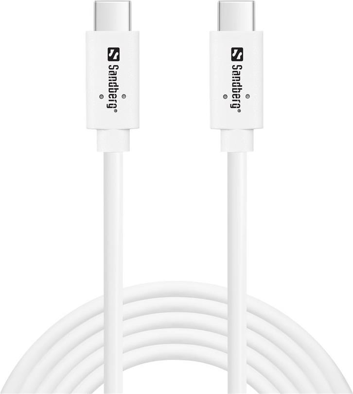 Sandberg - USB-Kabel - 24 pin USB-C (M) zu 24 pin USB-C (M) - USB 3,1 Gen 2 - 2,0m - USB-Stromversorgung (100 W), bis zu 10 Gbps Datentransferrate - weiß (136-54)