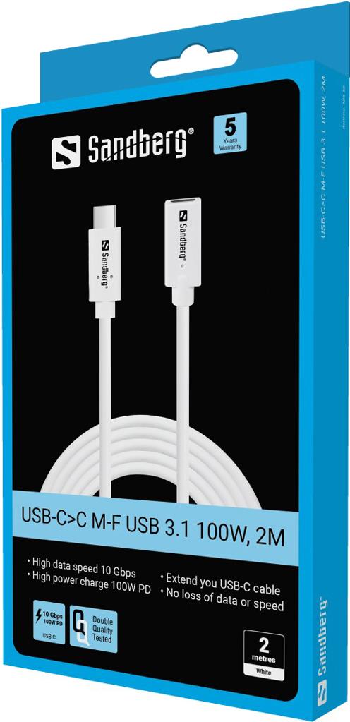 Sandberg - USB-Kabel - 24 pin USB-C (M) zu 24 pin USB-C (W) - USB 3,1 - 2,0m - weiß (136-55)