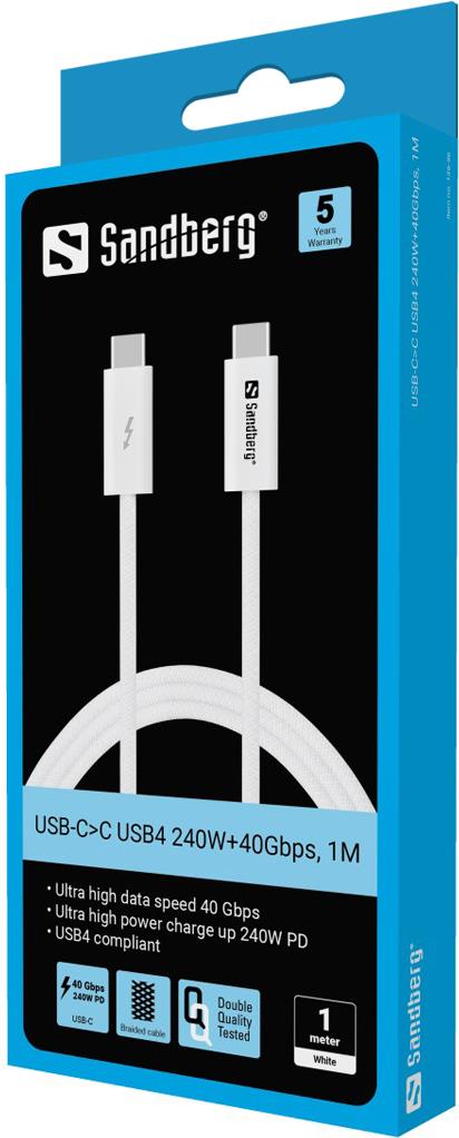 Sandberg - USB-Kabel - 24 pin USB-C (M) zu 24 pin USB-C (M) - USB4 - 1,0m - weiß (136-56)