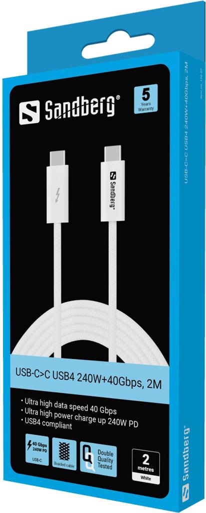 Sandberg - USB-Kabel - 24 pin USB-C (M) zu 24 pin USB-C (M) - USB4 - 2,0m - weiß (136-57)