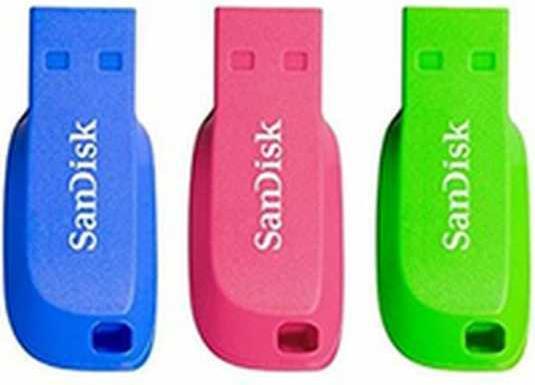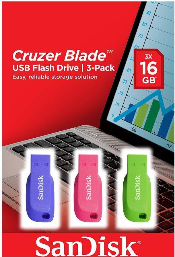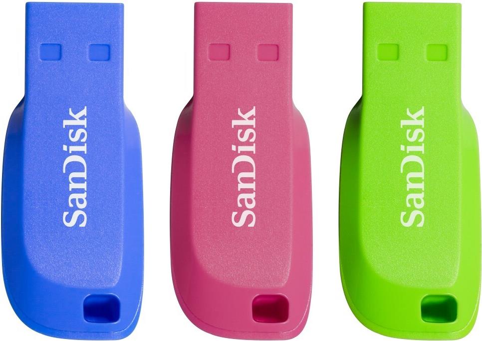 SanDisk Cruzer Blade - USB-Flash-Laufwerk - 16 GB - USB 2.0 - Blau, grün, pink (Packung mit 3)