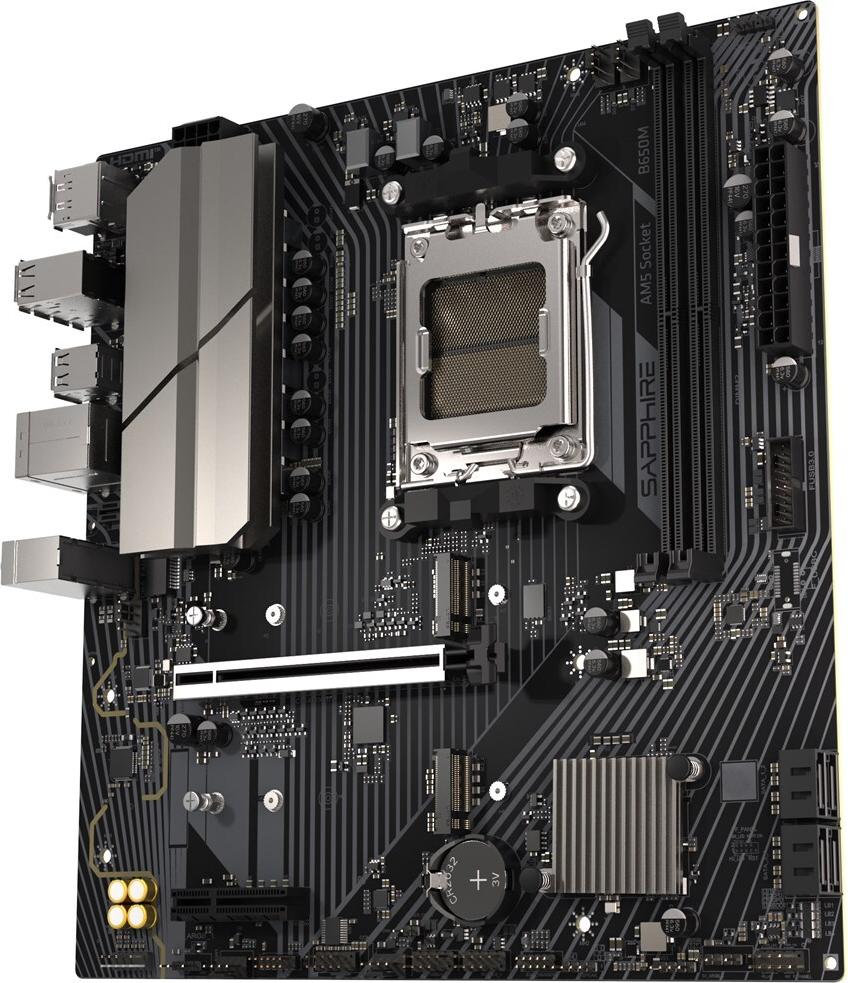 Das Sapphire B650M-E-Motherboard wurde für Leistung und Flexibilität entwickelt und unterstützt Prozessoren der Ryzen 7000/8000/9000-Serie. Es verfügt über einen Micro-ATX-Formfaktor, der in die meisten PC-Konfigurationen passt und gleichzeitig umfangreiche Erweiterungsmöglichkeiten mit vier DIMM-Steckplätzen für DDR5-RAM und mehreren PCIe 4.0-Schnittstellen bietet. Die High-Definition-Audiofunktion sorgt für ein beeindruckendes Klangerlebnis, wodurch sich dieses Motherboard für Gaming- und Multimedia-Anwendungen eignet.