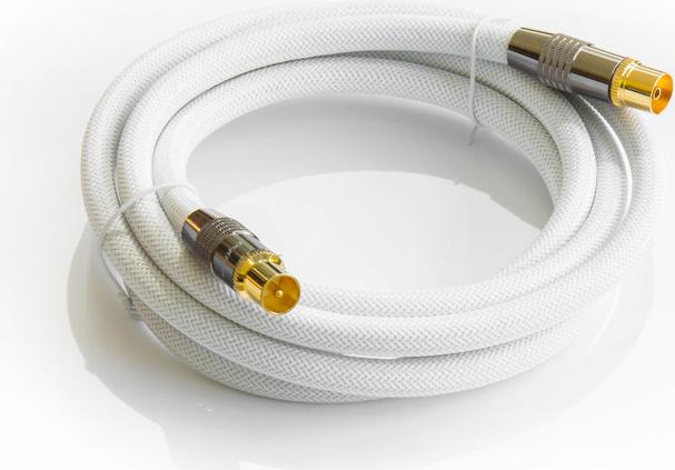 SAT Antennenkabel, IEC/Koax Stecker an Buchse vergoldet, Schirmmaß 120 db, 75 Ohm, Nylongeflecht weiß, 20m, PYTHON® Series (GC-M2009)