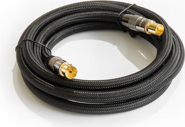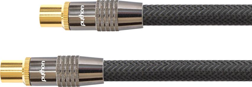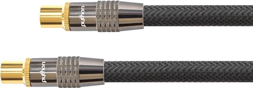 SAT Antennenkabel, IEC/Koax Stecker an Buchse vergoldet, Schirmmaß 120 db, 75 Ohm, Nylongeflecht schwarz, 1m, PYTHON® Series (GC-M2011)