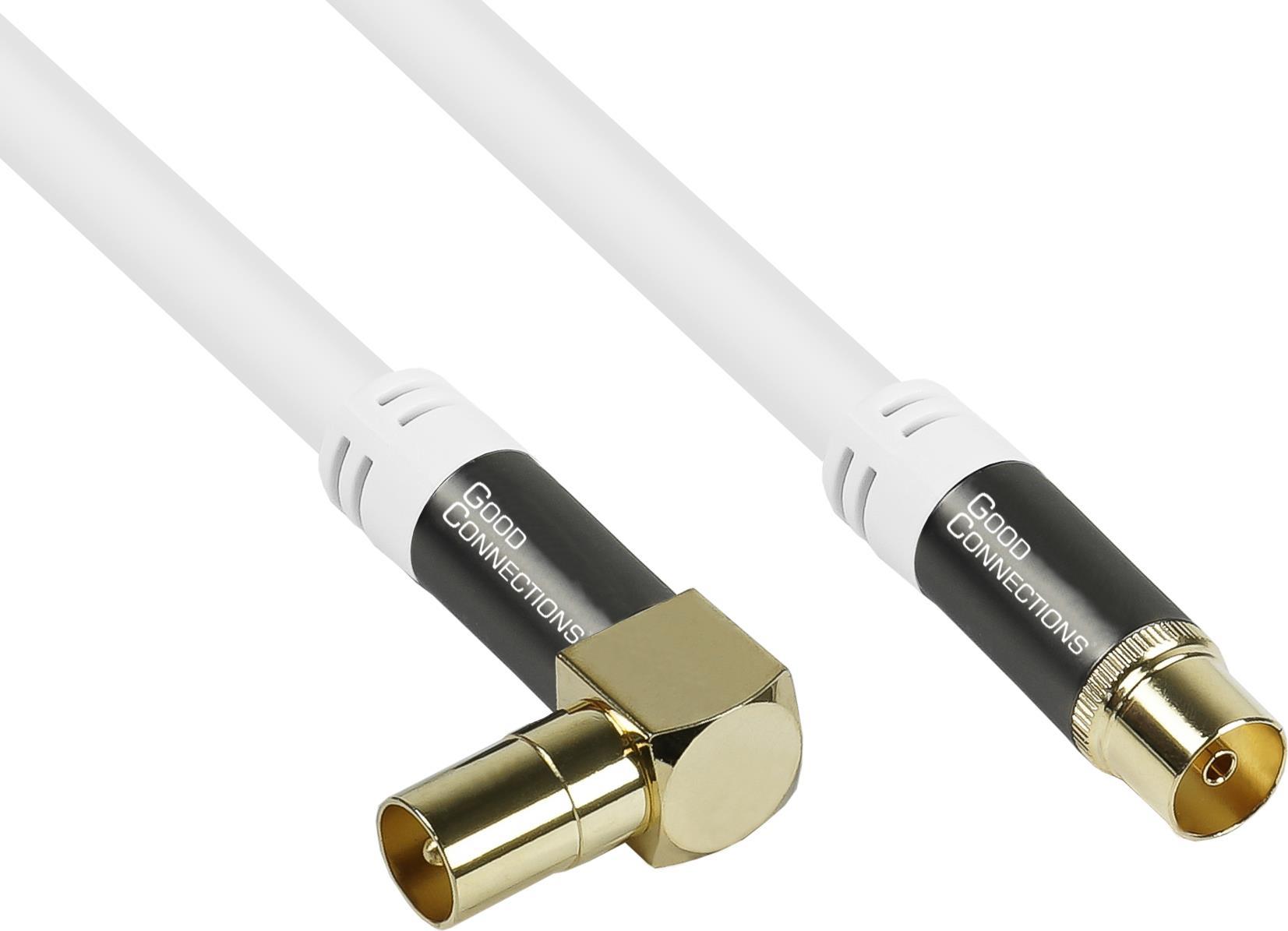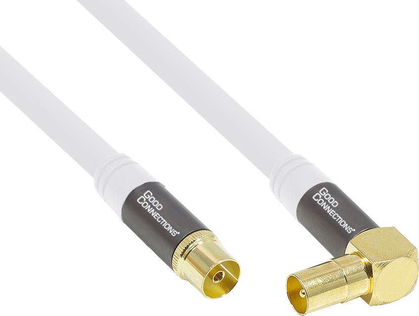 Das hochflexible SmartFLEX Antennenkabel von Good Connections® ist sowohl für den digitalen als auch den analogen Empfang aus dem Kabelnetz geeignet (DVB-T2, DVB-T, DVB-S, DVB-C). Verbinden Sie, selbst an schwer zugänglichen Stellen, problemlos Ihren Fernseher bzw. SmartTV mit dem Kabelanschluss oder Receiver. Der abgewinkelte IEC/Koax Stecker ermöglicht eine sehr platzsparende Installation, bspw. bei flachen Wandhalterungen oder geringem Wandabstand. SmartFLEX Technologie Durch die SmartFLEX Technologie sind diese Antennenkabel im Vergleich zu herkömmlichen, recht steifen Antennenkabeln, hochflexibel. Die besondere Zusammensetzung des PVC Kabelmantels ermöglicht sehr geringe Biegeradien und erleichtert dadurch die Installation bzw. die Verlegung der Kabel. Zusätzlich zur höheren Flexibilität zeichnen sich die Kabel der SmartFLEX Serie auch durch ihre mechanische Belastbarkeit und lange Haltbarkeit gegenüber Standardkabeln aus. Hochwertiger Kabelaufbau Der Leiter dieses Antennenkabel besteht zu 99,99 % aus sauerstofffreiem Kupfer (OFC). Dieser hochwertige Kabelaufbau ermöglicht eine optimale Signalübertragung und höhere Bruchfestigkeit des Kabels. Geschirmte Vollmetallanschlüsse Für eine einwandfreie Signalübertragung sind die Anschlüsse 100% geschirmt und mit vergoldeten Kupferkontakten ausgestattet. Die massiven und passgenau gefertigten Vollmetallanschlüsse garantieren eine sichere und optimale Verbindung. Vierfachschirmung 120 dB / 75 Ohm Die vierfache Schirmung des Kabels mit einem Schirmungswert von 120 dB / 75 Ohm sorgt für eine gleichbleibend hohe Signalübertragung.