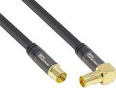 SAT Antennenkabel SmartFLEX, IEC/Koax Stecker abgewinkelt an Buchse, vergoldet, vierfach geschirmt, Schirmmaß 120dB, schwarz, 20m, Good Connections® (GC-M2079)