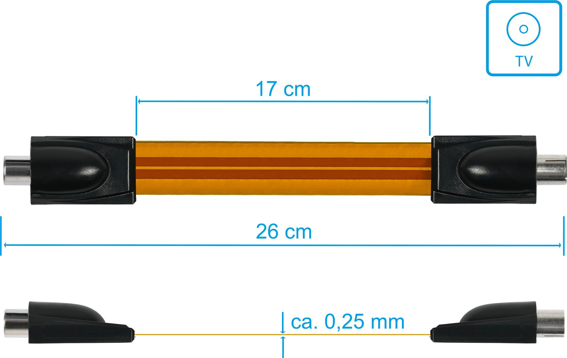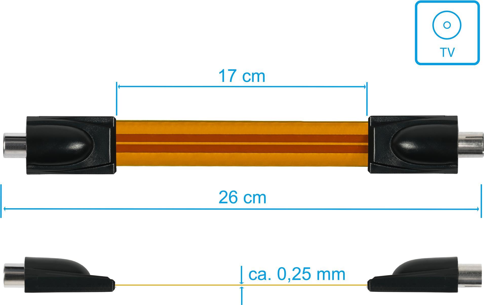 SAT/TV Fensterdurchführung High-Quality, IEC-/Koax-Stecker an Buchse, Gesamtlänge 26cm, flexible Län (S-FD26KSK)