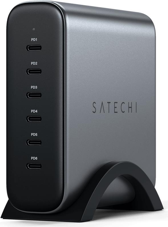 | Kompatibilität | 200W USB-C 6-PORT GAN CHARGER Rated 4.8 out of 5 stars42 ReviewsClick to scroll to reviews $149.99 Pay in 4 interest-free installments of $37.49 with Learn more Level up with the 200W 6-Port USB-C PD GaN Charger by Satechi. This elegant yet powerful charger allows you to charge up to 6 devices simultaneously driven by industry-leading GaN technology for a fast, reliable, and safe charge. By swapping out silicon for gallium nitride (GaN), we’ve reduced the size of our chargers without compromising power. Equipped with 6 USB-C PD ports to support multiple power configurations up to 200W, this charger is the perfect solution to power up your power-hungry devices. Plug US AU EU UK Details Tech Specs COMPATIBLE DEVICES MacBook Pro/Air M2, 2021 MacBook Pro 14-inch, 16-inch (M1 Pro & Max) 2021/2020/2019/2018/2017/2016 MacBook Pro, 2020/2018 MacBook Air, 2021 iPad Pro M1, 2020/2018 iPad Pro, 2020 iPad Air, iPhone 13 Pro Max/13 Pro/13 Mini/13, iPhone 12 Pro Max/12 Pro/12 Mini/12, iPhone 11 Pro Max/11 Pro/11, XS Max/XS/XR/X |