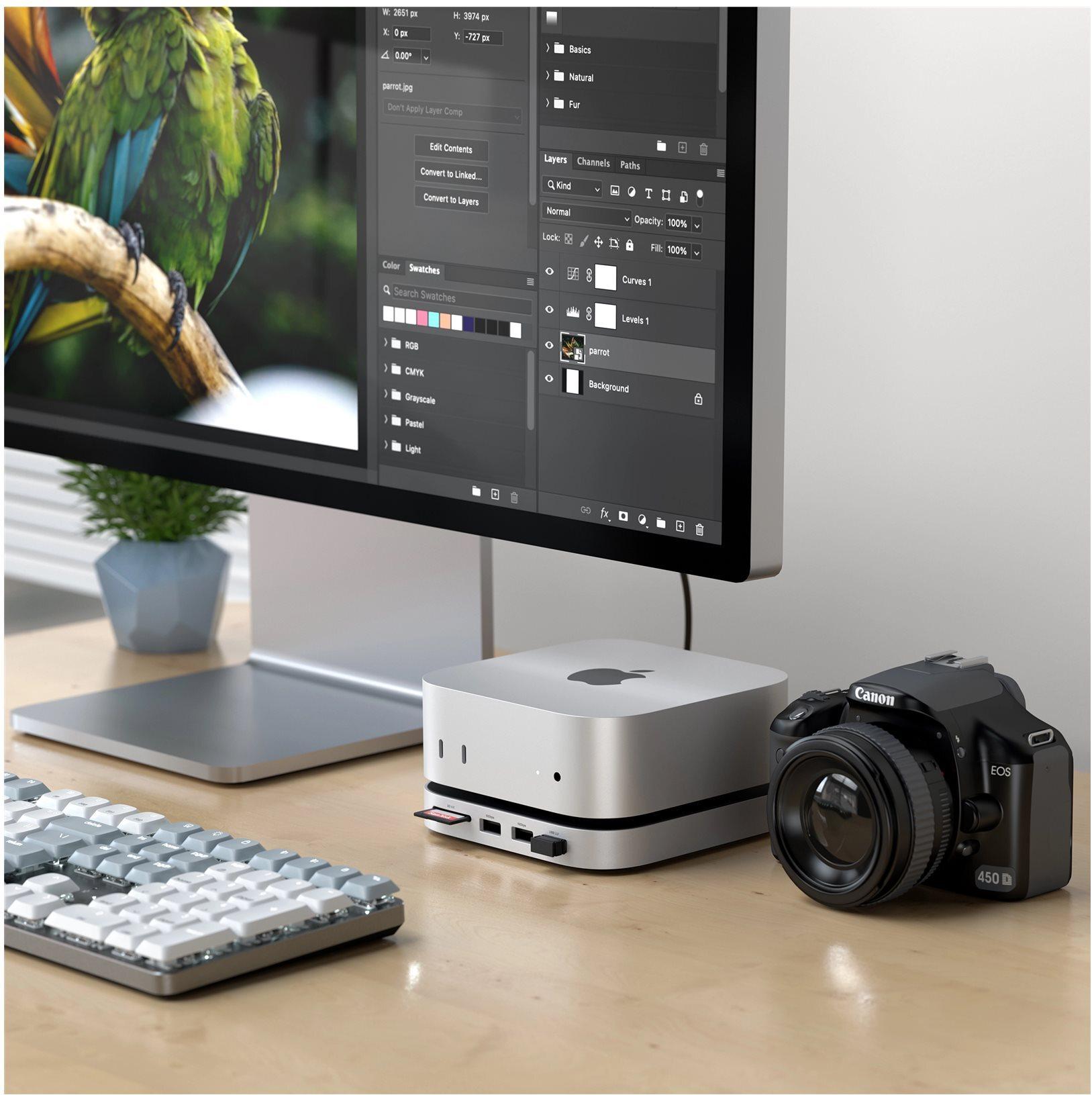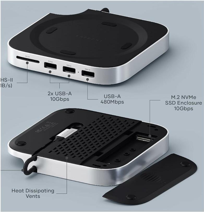 Er verfügt über Steckplätze für M.2-2280-Erweiterungen sowie eine SD-UHS-II-Speicherkarte, was ihn besonders praktisch für Nutzer macht, die schnellen Zugriff auf Daten und hohe Übertragungsgeschwindigkeiten benötigen. Der Desktop-Formfaktor sorgt für einen stabilen Aufbau und macht ihn sowohl für den professionellen als auch für den privaten Gebrauch geeignet. Erleben Sie nahtlose Konnektivität mit dem zuverlässigen Design und der Funktionalität von Satechi.