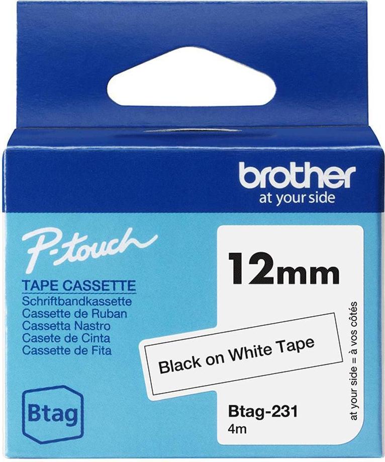 Brother BTAG-231 - Schwarz auf Weiß - Rolle (1,2 cm x 4 m) 1 Kassette(n) Hängebox - Etikettenband (BTAG231)