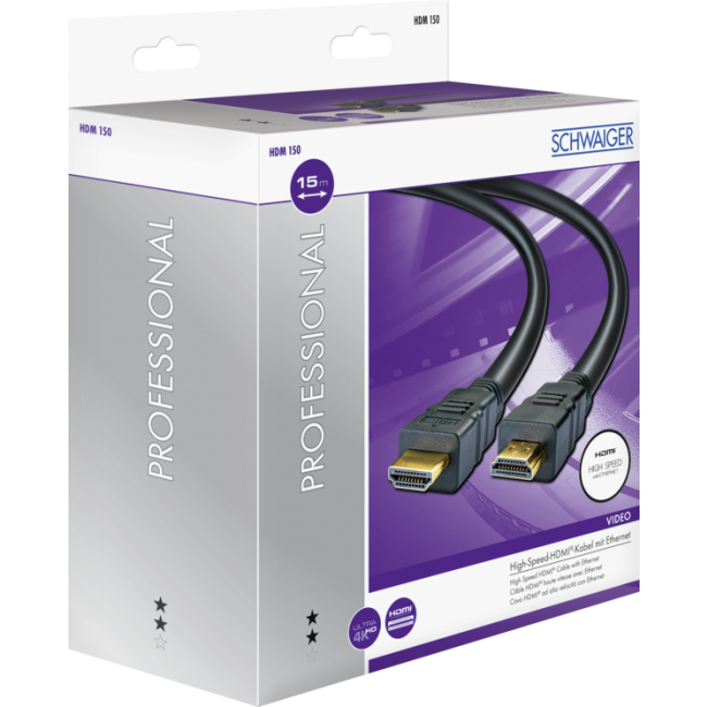 Schwaiger HDM150 013 HDMI-Kabel 15 m HDMI Typ A (Standard) Schwarz - Gold (HDM150013)