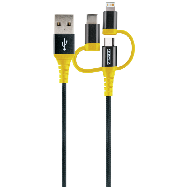Schwaiger WKUU310 511 USB Kabel 1,2 m USB A Micro-USB B/Lightning Schwarz - Gelb (WKUU310511)