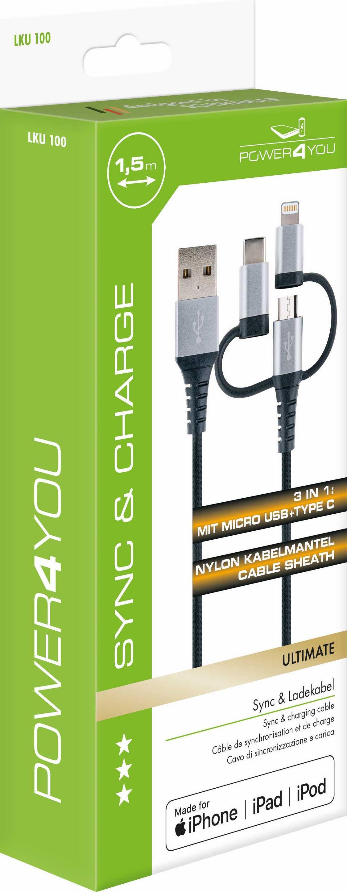 Dieses SCHWAIGER® 3-in-1 Sync & Ladekabel ist für die Verwendung mit einem Smartphone, Tablet, ...