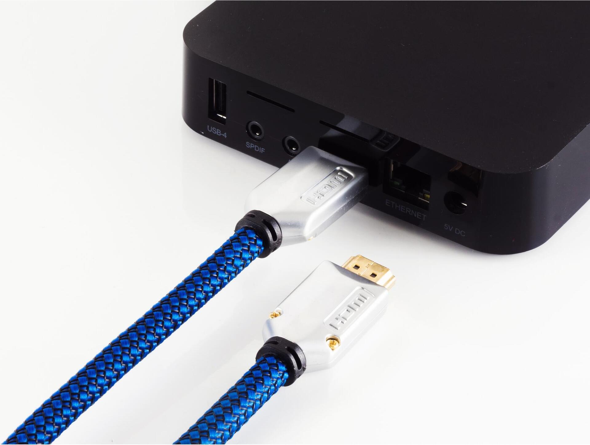 shiverpeaks®-BASIC-S--HDMI A-Stecker verchromt auf HDMI A-Stecker verchromt, Metall-Stecker verschraubt, vergoldete Kontakte, Full HD, ULTRA HD, 3D, HEAC, schwarz-blauer cotton Mantel, 1,0m