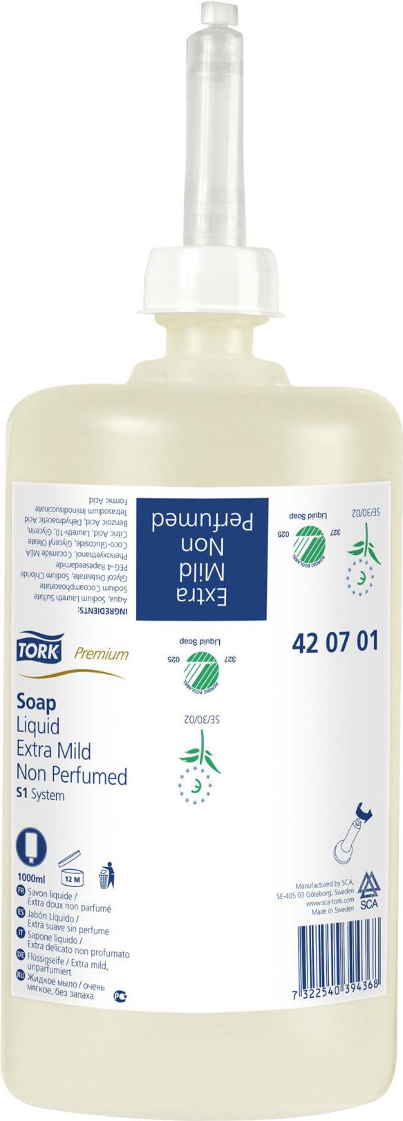 Die Seife ist für häufiges Händewaschen besonders geeignet, z.B. für das medizinische Personal in Krankenhäusern, für Zahnärzte usw. Die milde, cremige Seife wurde dermatologisch getestet und zeichnet sich durch ihren cremigen Schaum mit hoher Konsistenz aus. Die Tork Premium Flüssigseife Extra mild unparfümiert ist frei von Farb- und Duftstoffen.