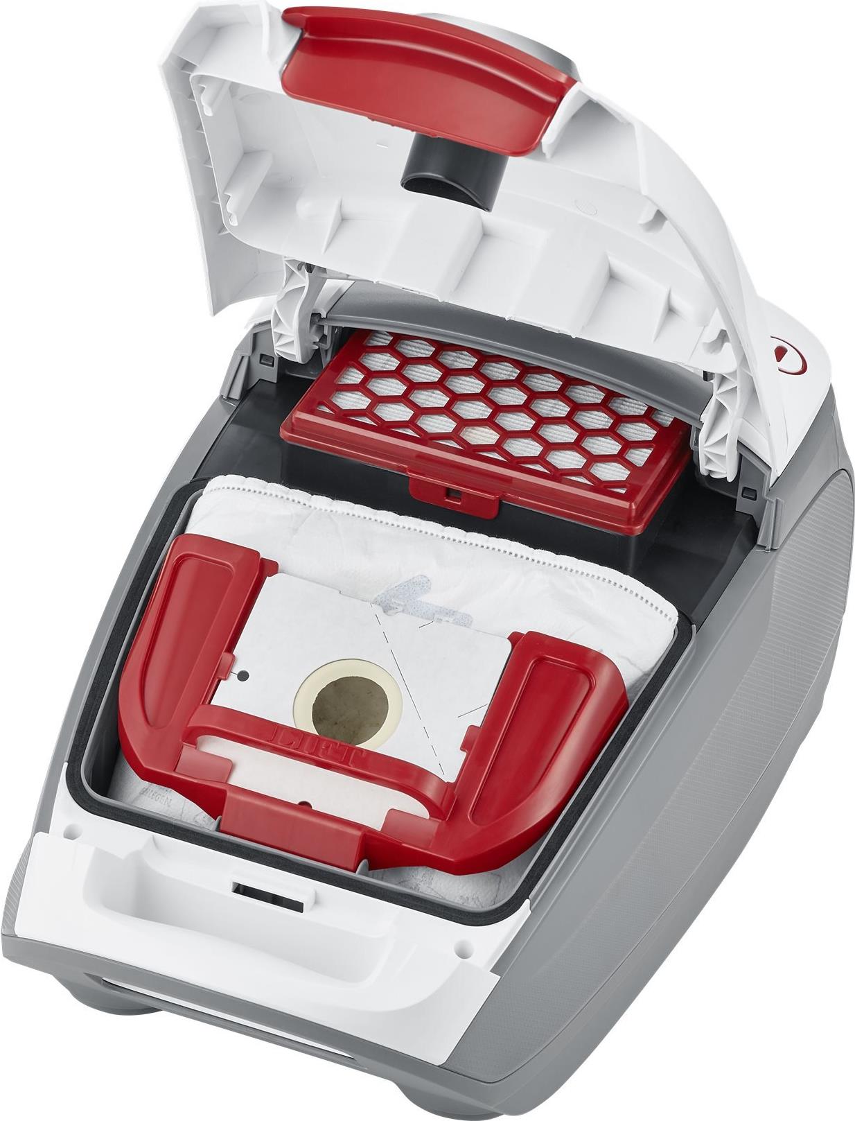 Kraftvoll und leise saugstarker 850 W Motor mit elektronischer Leistungsregulierung für die perfekte Reinigung verschiedener Oberflächen und 74dB A.