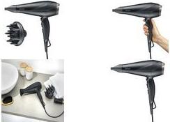 SEVERIN Haartrockner HT 0167, schwarz / silber Leistung 1.950 - 2.300 Watt, 2 Wippschalter für 2 - 1 Stück
