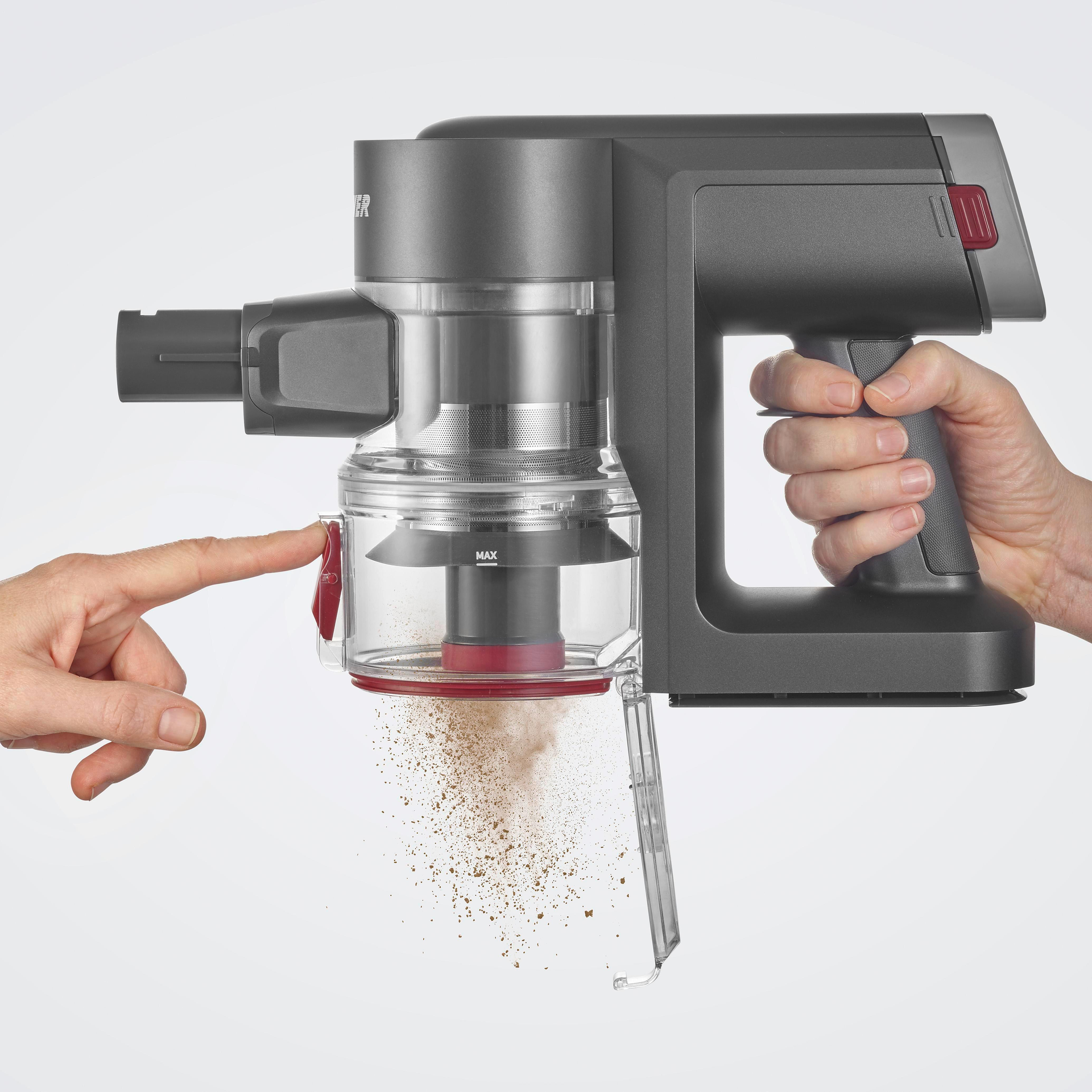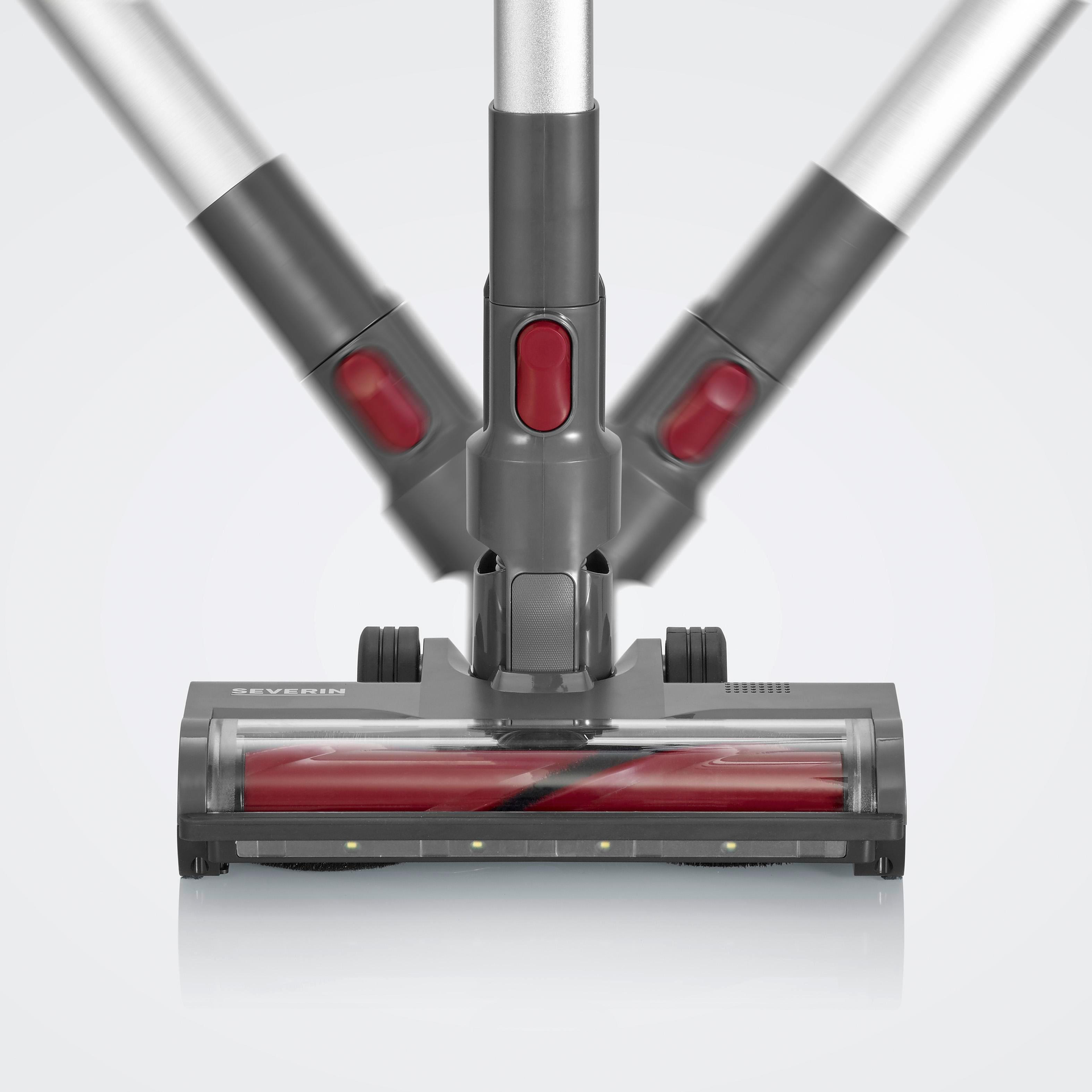 Severin HV 7968. Produkttyp: Stabstaubsauger, Staubbehälter Typ: Staubbeutel, Produktfarbe: Anthrazit, Rot, Silber. Reinigungsart: Trocken, Geräuschpegel: 75 dB, Rollenumdrehung (max.): 100000 RPM. Energiequelle: Akku, Maximale Eingangsleistung: 300 W, Saugleistung: 20000 Tag. Verpackungsbreite: 780 mm, Verpackungstiefe: 140 mm, Verpackungshöhe: 295 mm. Breite: 115 mm, Tiefe: 210 mm, Höhe: 240 mm (HV7968)