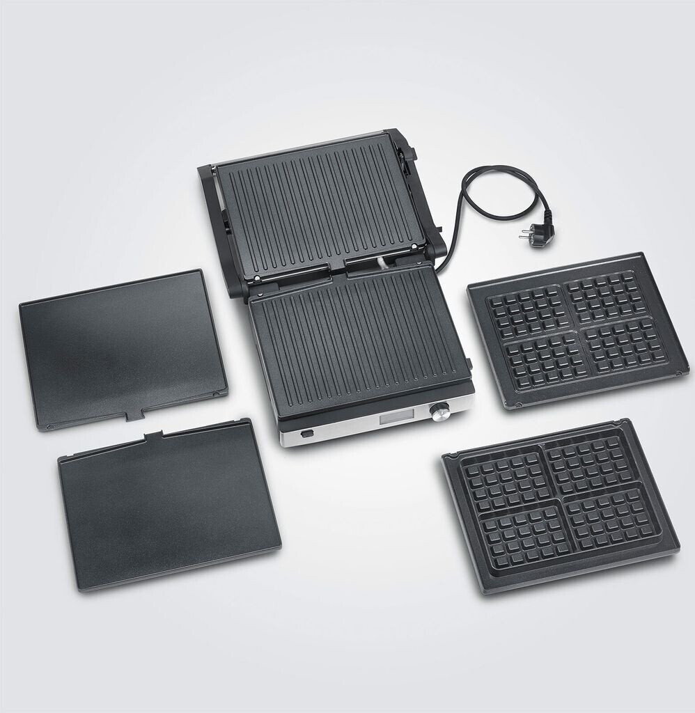 3 austauschbare Platten (Grill, Panini/Sandwich, Waffel), keramikbeschichtet, spülmaschinengeeignet |