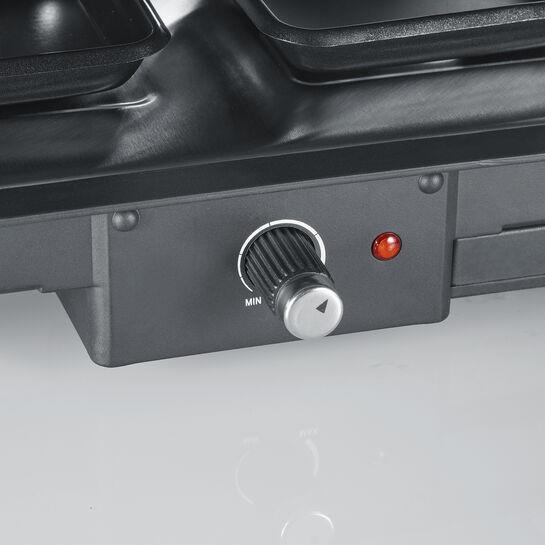 Gelangweilt von sich täglich wiederholenden Gerichten? Erstellen Sie mit dem Raclette-Grill kreative Kombinationen Ihrer Lieblingszutaten. Das stufenlos regulierbare Thermostat sorgt für schnelles Aufheizen und optimale ...