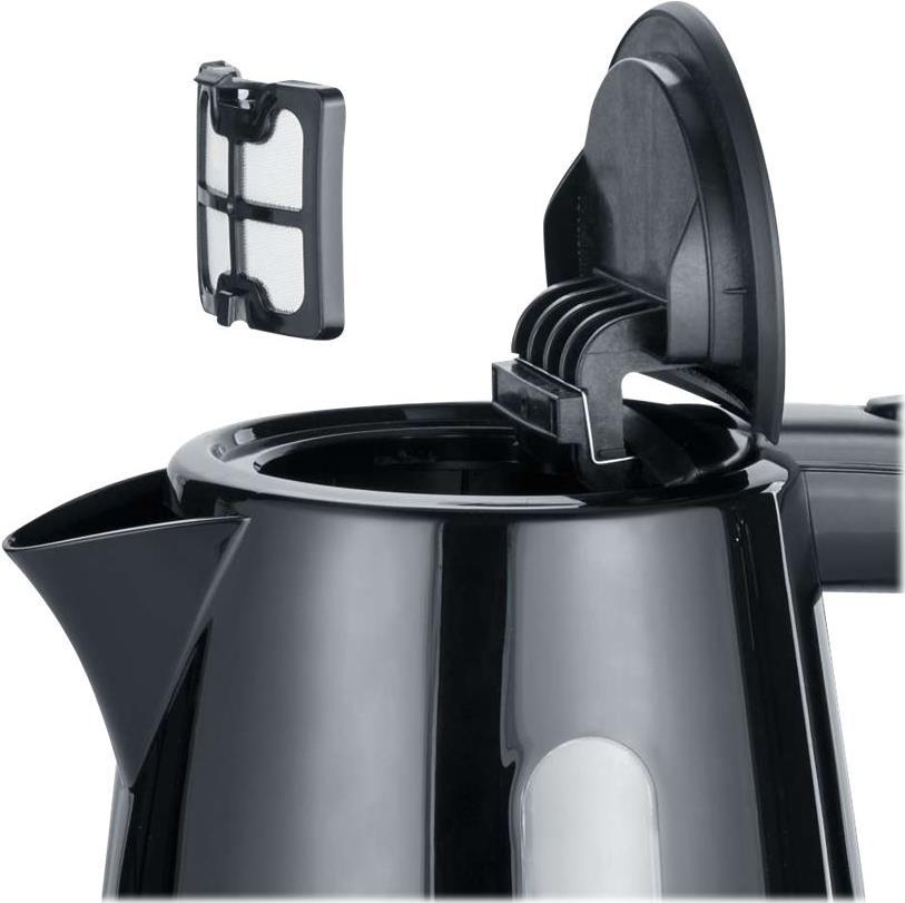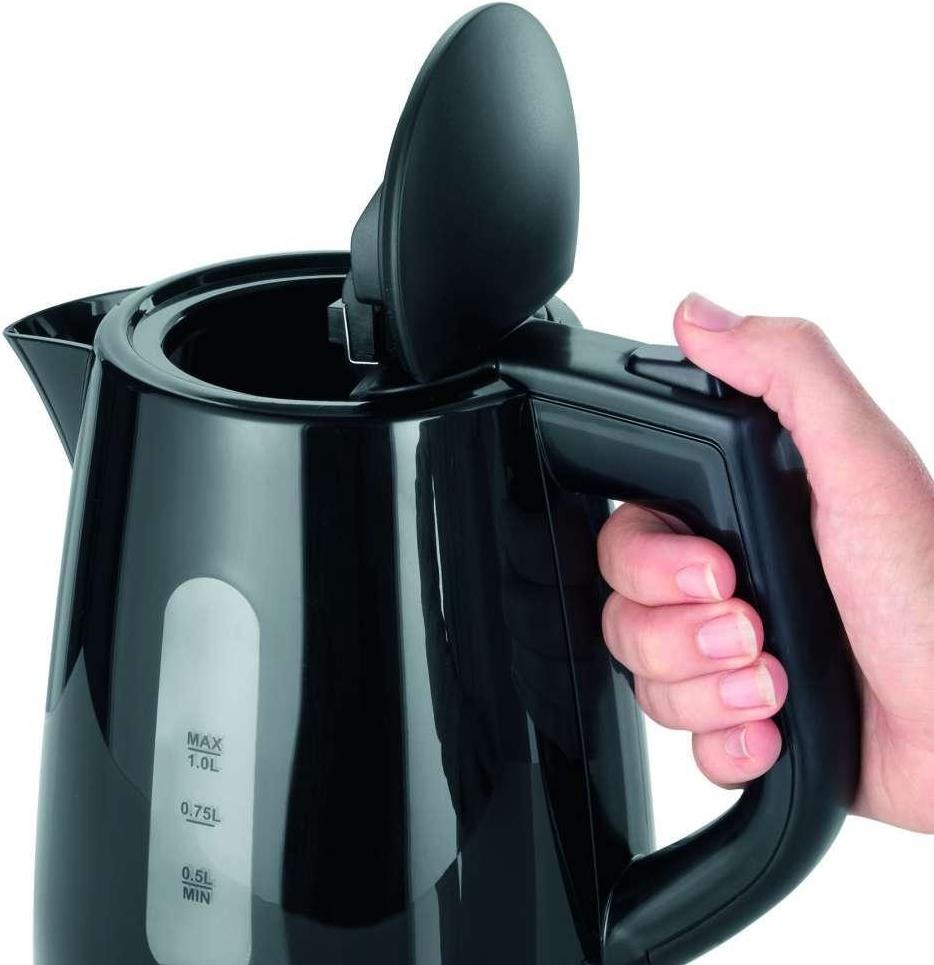 Für eine platzsparende Kücheneinrichtung ist dieser Wasserkocher klein in seiner Größe (1,0 Liter) und dient als leistungsstarker Helfer für Reisen oder kleinere Haushalte. Die praktische 1-Hand-Bedienung ermöglicht es Ihnen nebenbei noch andere Dinge zu erledigen - und dank des herausnehmbaren Kalkfilters wird eine Reinigung des Wasserkochers praktisch vereinfacht. Der kleine Wasserkocher verfügt über eine Leistung von 2200 W, einen Überhitzungsschutz sowie Dampfstopp-Automatik.