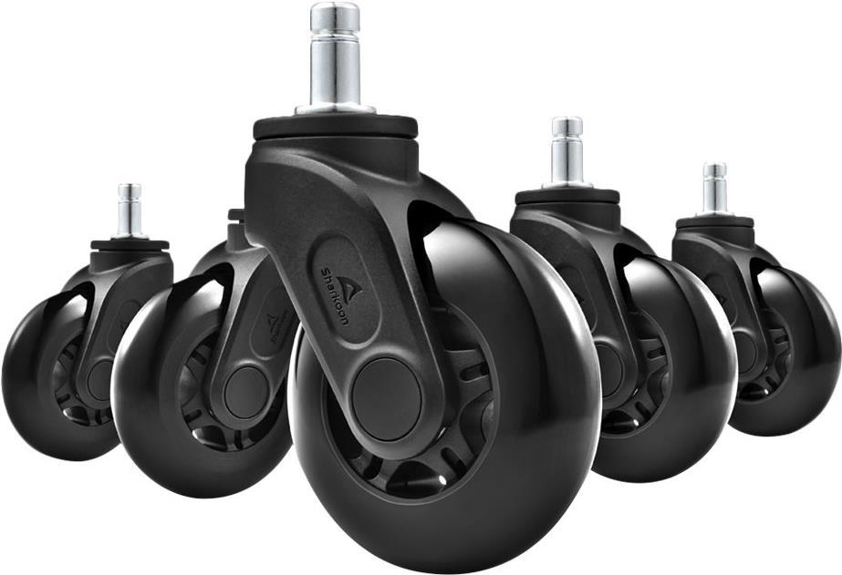 Ob Zuhause oder im Büro, sie sind die perfekte Ergänzung für jeden Gaming- oder Schreibtischstuhl und passen durch ihren universellen Stift in nahezu alle gängigen Modelle. Die den Rollen von Inline Skates nachempfundenen Räder sind aus Polyurethan gefertigt, das sowohl robust als auch besonders schonend für empfindliche Untergründe ist. Ohne Kratzer oder andere Spuren zu hinterlassen, gleiten die Räder sanft über alle Oberflächen und Böden. Zeitgleich rollen sie so geschmeidig, dass sie kaum hörbar sind und dadurch weder ablenken noch andere stören.