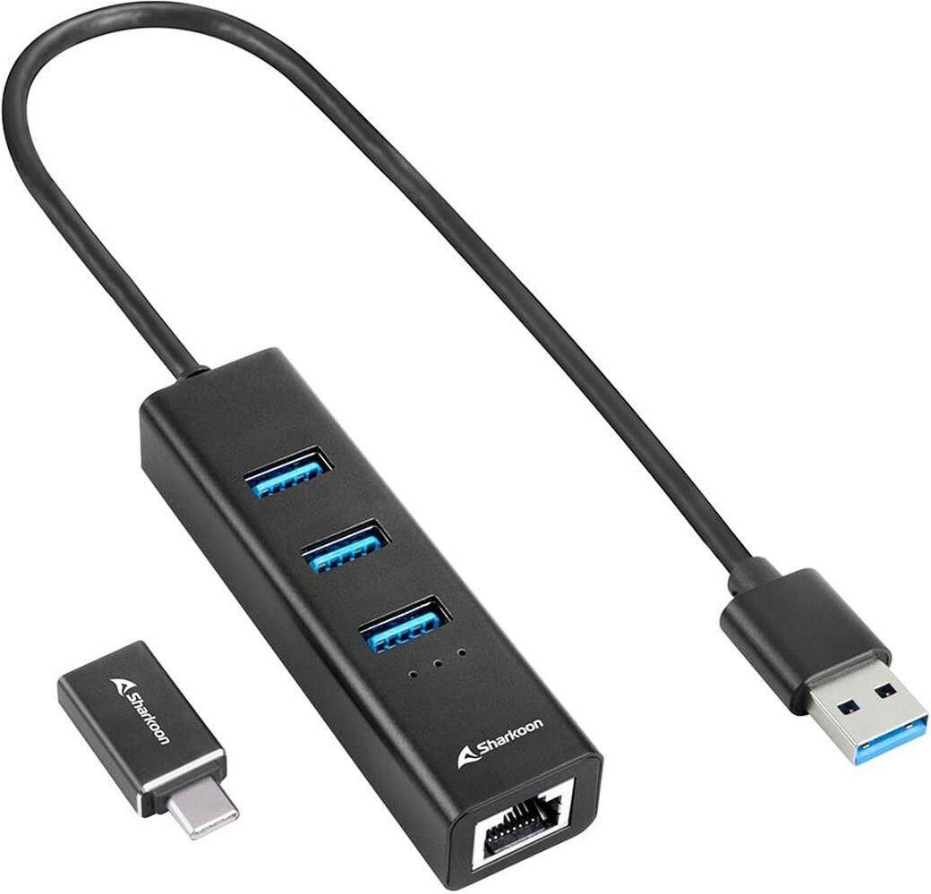 Sharkoon HUB 3X USB 3.2 +RJ45 ALU BLACK 3-PORT USB 3.2 GEN 1. USB 3.2 Gen 1 (3.1 Gen 1) Type-C 5000 Mbit/s Schwarz (4044951037575)