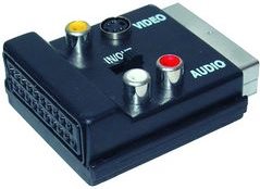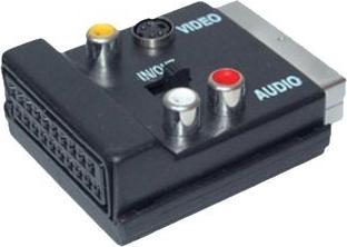 Shiverpeaks -BASIC-S - Scart-Adapter mit Scartkupplung und 3 Cinchkupplungen und 4-pol MINI DIN-Kupplung, IN / OUT mit Schalter.