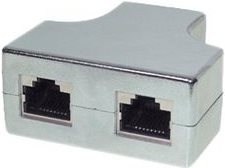 CAT5e Patchkabelverteiler, geschirmt, 1 x RJ45 8/8 Buchse auf 2 x RJ45 8/8 Buchse, 1:1 beschaltet, Metallisiertes Kunststoffgehäuse, Kontakte.