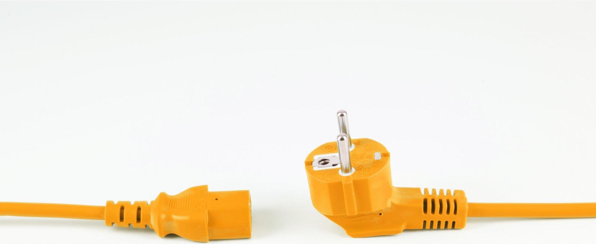 shiverpeaks ®-BASIC-S--Netzanschlusskabel, Schutzkontaktstecker 90° auf Kaltgerätebuchse, 230 V für Kaltgeräte, CEE7/7-C13, VDE, orange, 1,8m (BS09-05187)