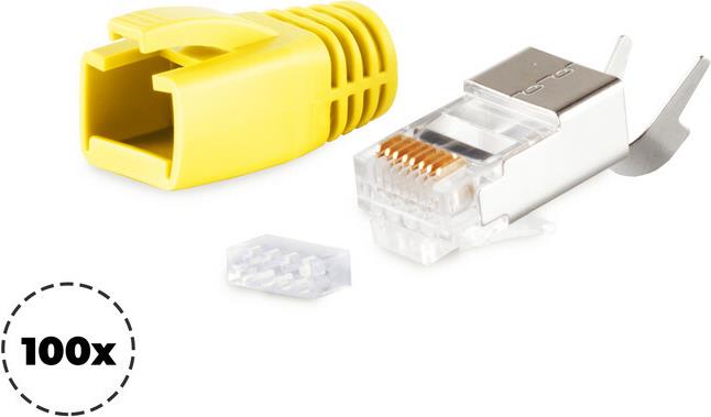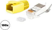 shiverpeaks ®-BASIC-S--Netzwerk Modular Stecker RJ45 SET für Verlegekabel bis AWG 23, Stecker mit Zugentlastung, Einführhilfe und Tülle, gelb VE 100 (BS72067-100Y)