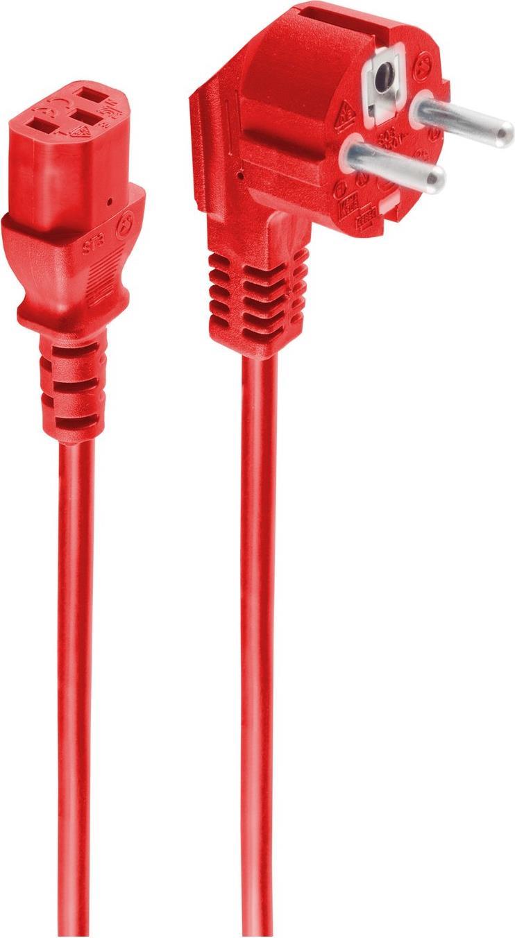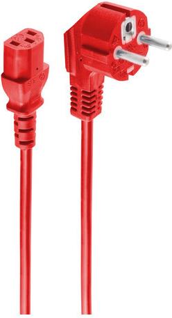 BASIC-S--Netzanschlusskabel, Schutzkontaktstecker 90° auf Kaltgerätebuchse, 230 V für Kaltgeräte, CEE7/7-C13, VDE, rot, 1,8m