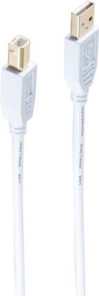 shiverpeaks®-BASIC-S--USB Kabel, Typ A Stecker auf Typ B Stecker, HIGH SPEED, vergoldete Kontakte, USB 2.0, weiß, 1,8m