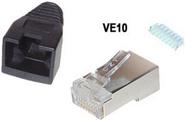 Netzwerkstecker Cat5e/Cat6 RJ45, geschirmt, vergoldete Kontakte, mit Einführhilfe und Tülle