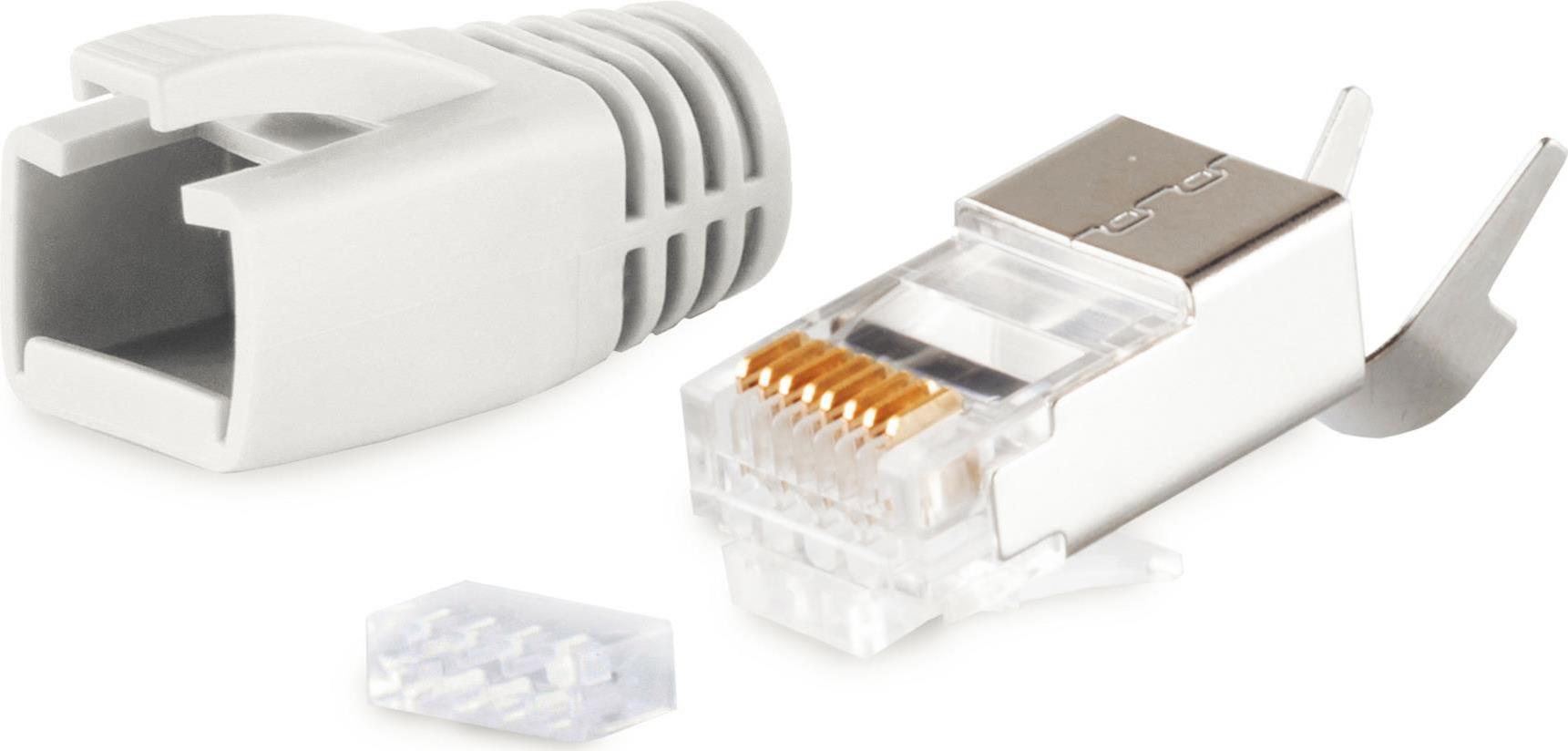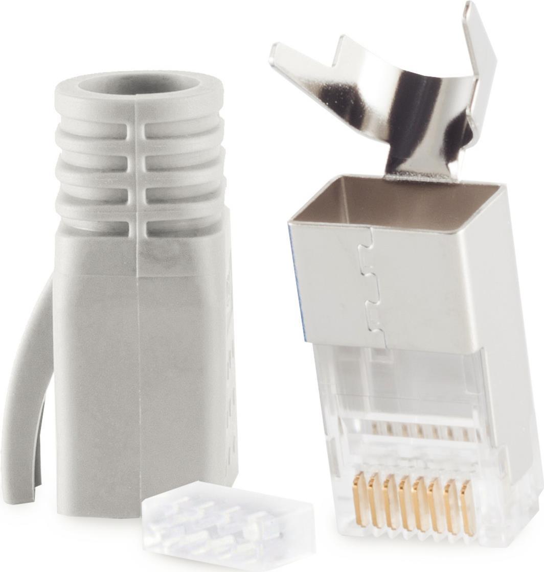 shiverpeaks -BASIC-S--Netzwerk Modular Stecker RJ45 SET für Verlegekabel bis AWG 23, Stecker mit Zugentlastung, Einführhilfe und Tülle, grau VE ...