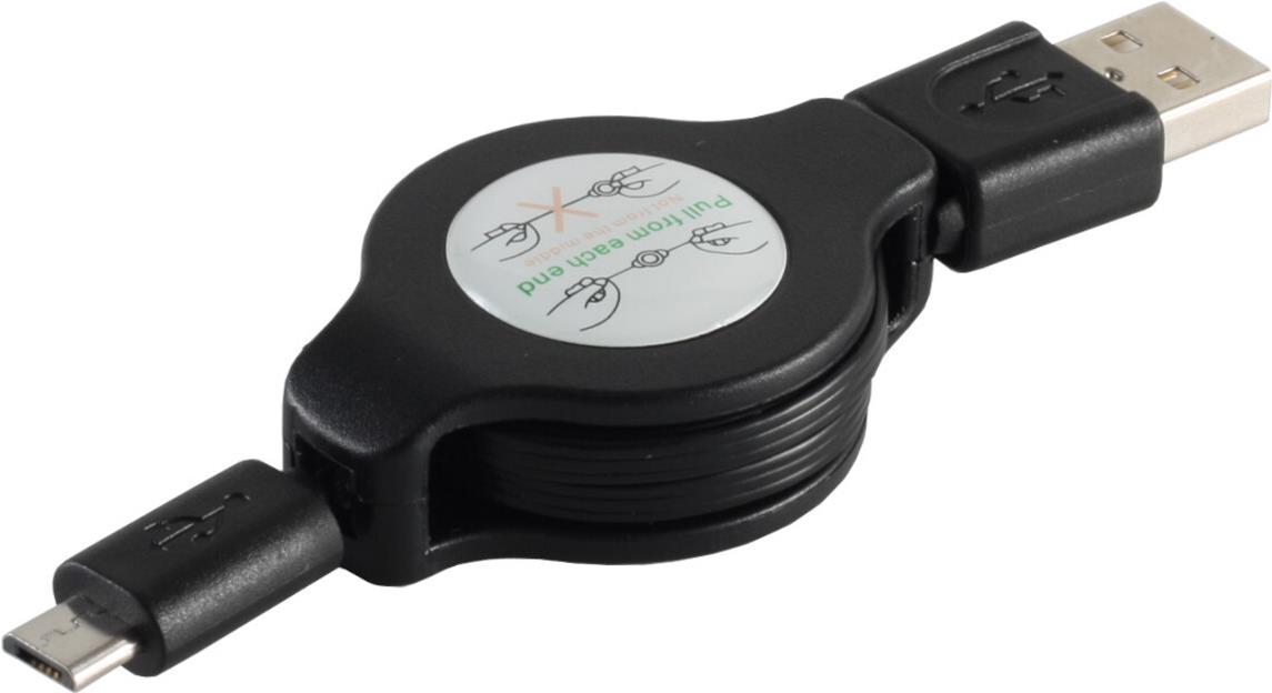 USB Micro Lade-Sycn Kabel USB-A-Stecker auf USB-Micro B Stecker, ausziehbar, 1mHauptmerkmale