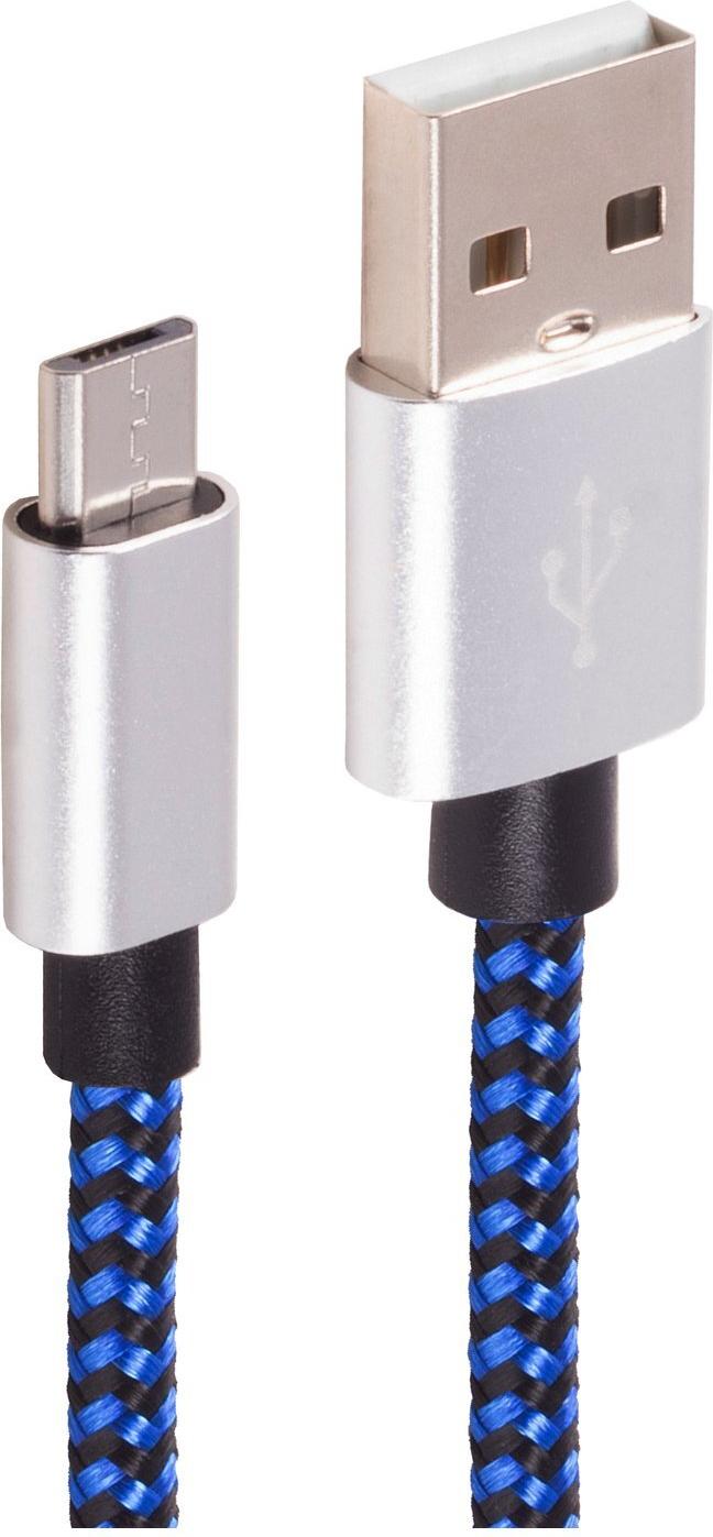 USB Ladekabel, USB-A-Stecker auf USB Micro B Stecker, Nylon, blau, 0,9m