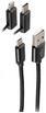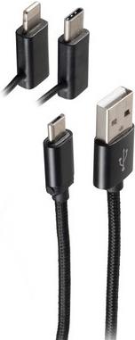 shiverpeaks®-BASIC-S--USB 3in1 Ladekabel, USB-A-Stecker auf USB Micro B + USB Typ C + 8-pin Stecker, Nylon, schwarz, 1m