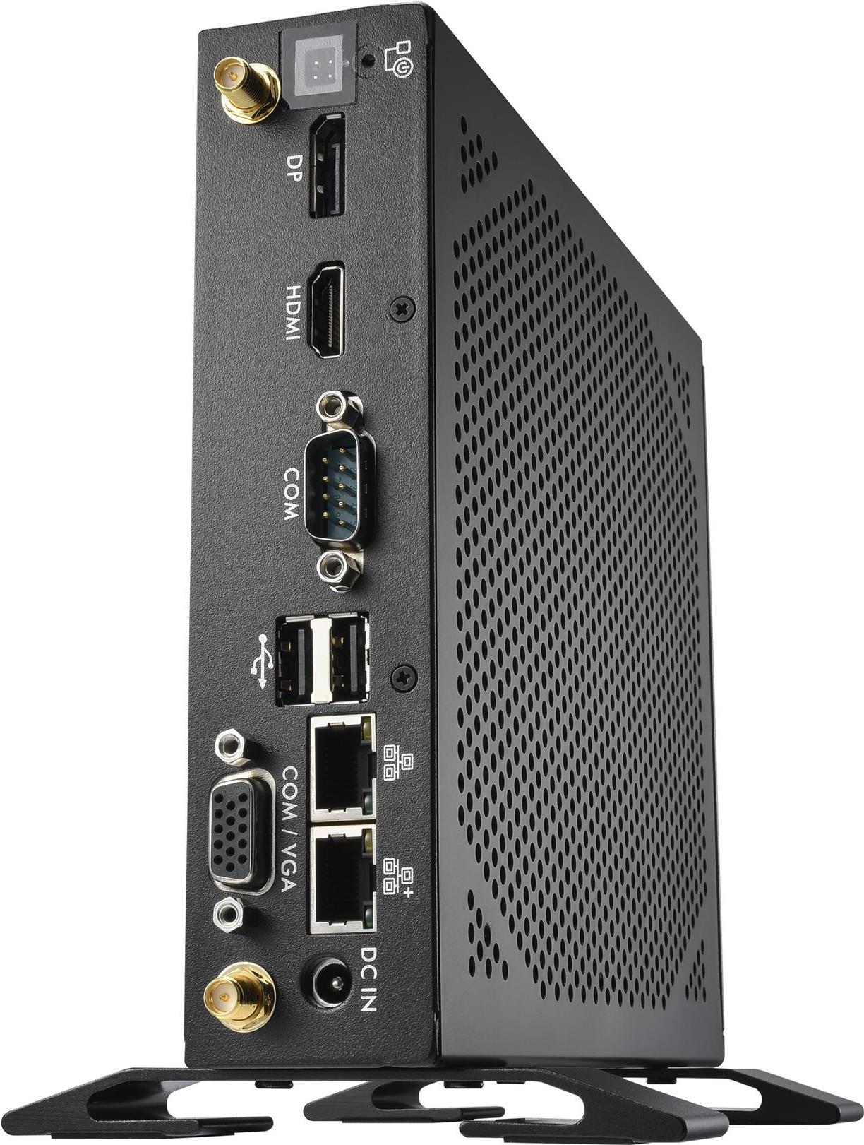 In den zweiten M.2-Steckplatz kann optional mit Hilfe des Adapter-Kits WWN04 auch ein 4G/5G-Modul integriert werden. Dank komplett passiver Kühlung ist das System praktisch wartungsfrei, für den 24/7-Dauerbetrieb geeignet und außerdem sehr sparsam. Es ist ideal einsetzbar für professionelle Anwendungen wie Digital Signage, POS, Steuerung, Office oder als Media-PC.