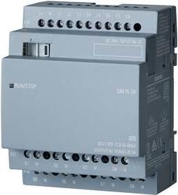 Siemens LOGO! DM16 24 0BA2Vernetzung von bis zu 2 mal 8 Grundgeräte über EthernetKommunikation zu SIMATIC Controller, SIMATIC Panels und PCSD-Kartenslot für z.B. DataloggingKlein, stark und einfachMit LOGO! 8 bringt Siemens eine komplett neue Logikmodul-Generation auf den Markt. Sie erfüllt nahezu alle Kundenwünsche bei vereinfachtem HandlingVon der Beleuchtungssteuerung im Eigenheim bis zum Fernzugriff mit Tablet-PCs oder Smartphones und Alarmierung per SMS überzeugt die Logikmodul-Reihe LOGO! bereits viele Anwender durch ihre einfache Projektierung und Handhabung. Mit LOGO! 8 bringt Siemens-Division Industry Automation eine komplett neue Gerätegeneration auf den Markt. Alle LOGO! 8-Grundgeräte bieten jetzt Kommunikation per Ethernet, mehr Funktionalität für abgesetzte Bedienung und Fernzugriff über Webserver sowie einfache Projektierung von Kommunikationsfunktionen per Drag&Drop. Die kleine Bauform von 72 Millimenter (4 TE) spart Platz im Unterverteiler, das sechszeilige Display mit je 16 Zeichen pro Zeile und drei steuerbaren Hintergrundfarben bietet klare Bedienerinformationen mit deutlichen Signalfarben. Das sechszeilige externe Textdisplay mit 20 Zeichen pro Zeile bietet zusätzlich vier Funktionstasten und wird via Ethernet mit dem Grundgerät verbunden. Mit sieben Digital-, drei Analog- und diversen Power-Modulen zur Stromversorgung lässt sich eine LOGO! 8 je nach Bedarf ergänzen. Zum Aufbau von Ethernet-Netzwerken gibt es ein Switch-Modul, zum Alarmieren und Fernsteuern per SMS ein neues LOGO! 8-CMR-Modul. Über den GPS-Kanal kann dieses aber auch die Position ermitteln und eine automatische Zeitsynchronisation durchführen. Das Überwachen und Steuern von LOGO! 8 über WLAN und Internet ist mit dem integrierten Webserver für den Anwender besonders einfach. Webseiten mit Ansichten der LOGO! und des externen Textdisplays sind über alle gängigen Webbrowser auf PCs, Smartphones und Tablet-PCs darstellbar. Das Einrichten erfolgt über die Software LOGO! Soft Comfort V8 ohne Kenntnisse der HTML-Programmierung. Die LOGO! 8 ist anschlusskompatibel zu den Vorgängerversionen. Programme können in LOGO! Soft Comfort V8 übernommen und komfortabel erweitert werden. Technische Daten: Anzahl Ausgänge max.: 8Anzahl Eingänge max.: 8Betriebsspannung (Bereich): 20.4 V/DC bis 28.8 V/DCBetriebsspannung (num): 24 V/DCFunk-Entstörung: Nach EN 55011 (Grenzwertklasse B)Herst.-Teilenr.: 6ED1055-1CB10-0BA2Kurzschluss-Schutz: JaMontageart: Auf Hutschiene 35mm, 4 Teilungseinheiten breitSPS-Komponente (Kategorisierung): SPS-ErweiterungsmodulSchutzart: IP20Typ (Hersteller-Typ): LOGO! DM16 24 0BA2Umgebungstemperatur (max.): 55 °CUmgebungstemperatur (min.): 0 °CZertifizierung: Nach VDE 0631, CSA-Zulassung, UL-Zulassung, FM-Zulassung, IEC 61131, VDE 0631, Schiffbau-Zulassung