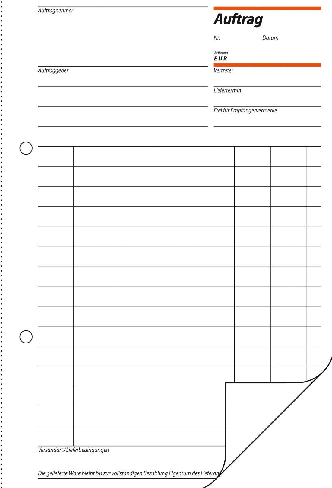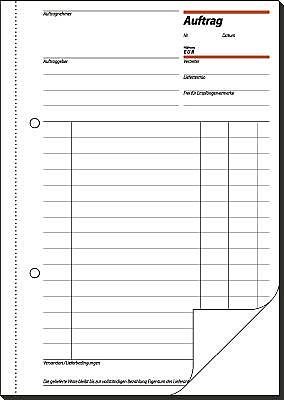 Auftragsformularbuch im Format DIN A5 mit 50 Originalen + 50 Kopien, inklusive Blaupapier. FSC zertifiziert, aktuell und rechtssicher. Das Originalblatt hat eine Abheftlochung und eine ultrafeiner Microperforation für ein schnelles und sauberes Heraustrennen. Die Kopie ist unbedruckt und ohne Perforation zum Verbleib im Buch. Eine Sicherheitsbindung macht das Formularbuch besonders stabil und haltbar.