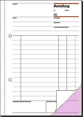 Bestellformular im Format DIN A5 mit 50 Originalen + 50 rosa Kopien, inklusive Blaupapier. FSC zertifiziert, aktuell und rechtssicher. Alle Blätter mit Abheftlochung und ultrafeiner Microperforation für ein schnelles und sauberes Heraustrennen. Eine Sicherheitsbindung macht das Formularbuch besonders stabil und haltbar.