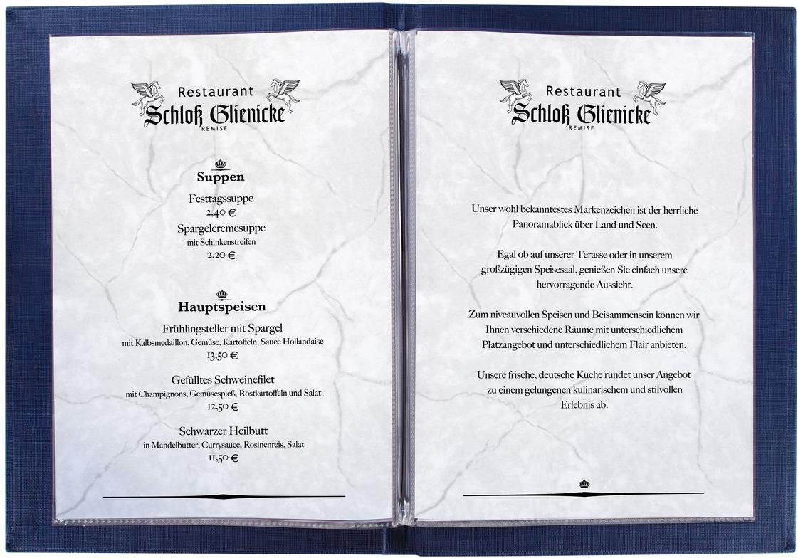 Ausführung: für Speisekarten-Mappen mit Gummi-Bindung