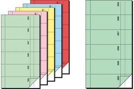 sigel Formularbuch "Bonbuch", 105 x 200 mm, farbig sortiert 360 Abrisse, mit Blaupapier, 2 x 60 Blatt, farbig sortiert - 5 Stück (BO082)