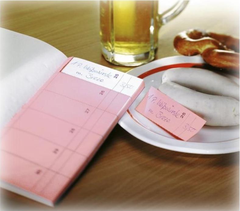 Selbstdurchschreibendes Bonbuch mit 2 x 60 Blatt (= 360 Abrisse) und integrierter Schreibunterlage. FSC zertifiziert, Originalbon in rosa, mit fortlaufender Nummerierung. Alle Blätter mit einer Schnitt-Steg-Perforation für ein schnelles und sauberes Heraustrennen der Abrisse. Eine Sicherheitsbindung macht das Formularbuch besonders stabil und haltbar. Vielseitig einsetzbar z.B. als Kuchen- oder Getränkebon.